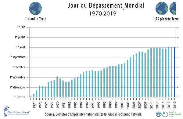 Cette journée intervient de plus en plus tôt. En 2019, elle est arrivée deux jours à l’avance par rapport à l’année dernière, mais 2 mois plus tôt qu’il y a 20 ans.